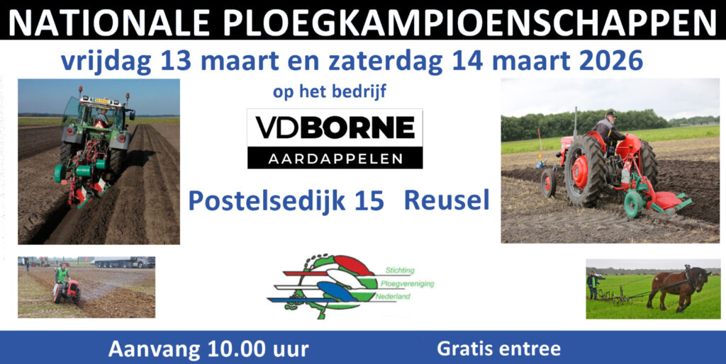 Op 13 en 14 maart is het NK ploegen en wel in Reusel bij Van Den Borne Aardappelen. Voor moderne ploegen (standaard of wedstrijdklasse), studenten AOC, éénassers, paarden en autonoom is er een open inschrijving. Denk je dat je goed kunt ploegen en je wilt deze kunst ook aan een groter publiek laten zien, met de kans dat je zelfs Nederlands Kampioen kunt worden, kom dan meedoen!!.